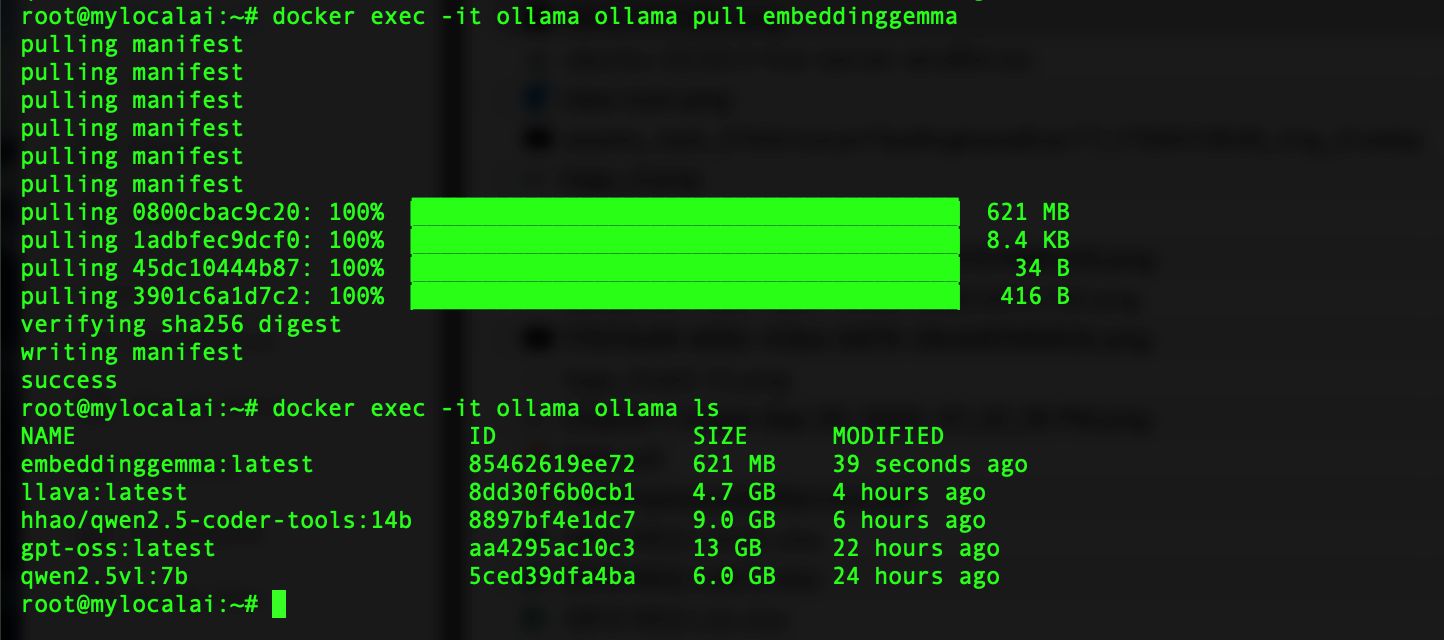 embeddinggemma:latest 85462619ee72 621 MB 19 minutes ago