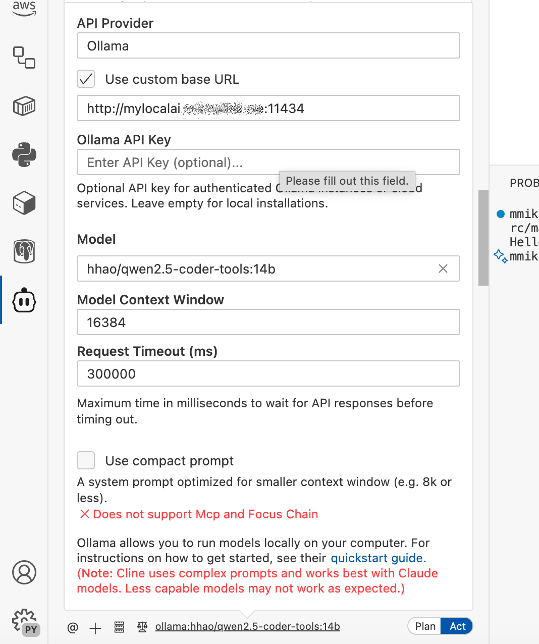 Some time ago, I installed the VS Code Cline extension to try different cloud providers and services. Of course, built-in Copilot provides some room and opportunities, but Cline offers unparalleled capabilities in fine-tuning models and a full spectrum of available providers. To start using my local server