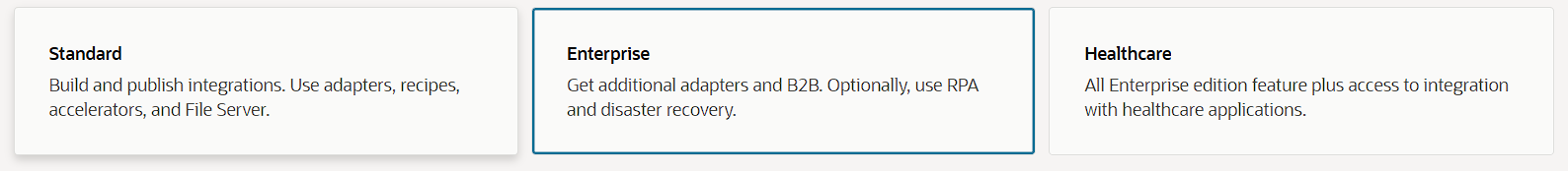 When you provision an Oracle Integration Cloud (OIC) instance on Oracle Cloud Infrastructure (OCI), you have the option to choose the Edition (standard, enterprise, healthcare):
